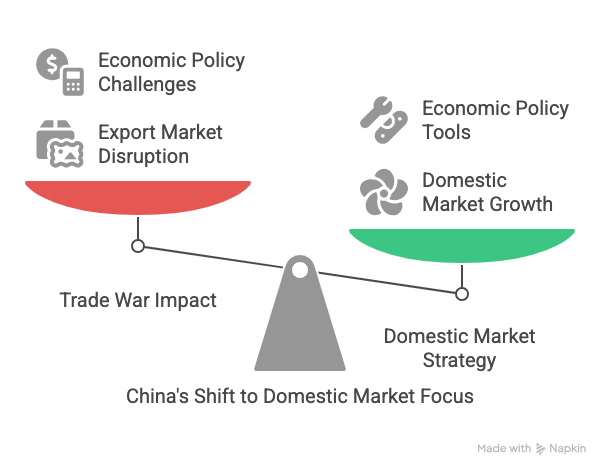 - Trade wars push China to prioritize its massive domestic market, potentially boosting self-sufficiency and internal consumption